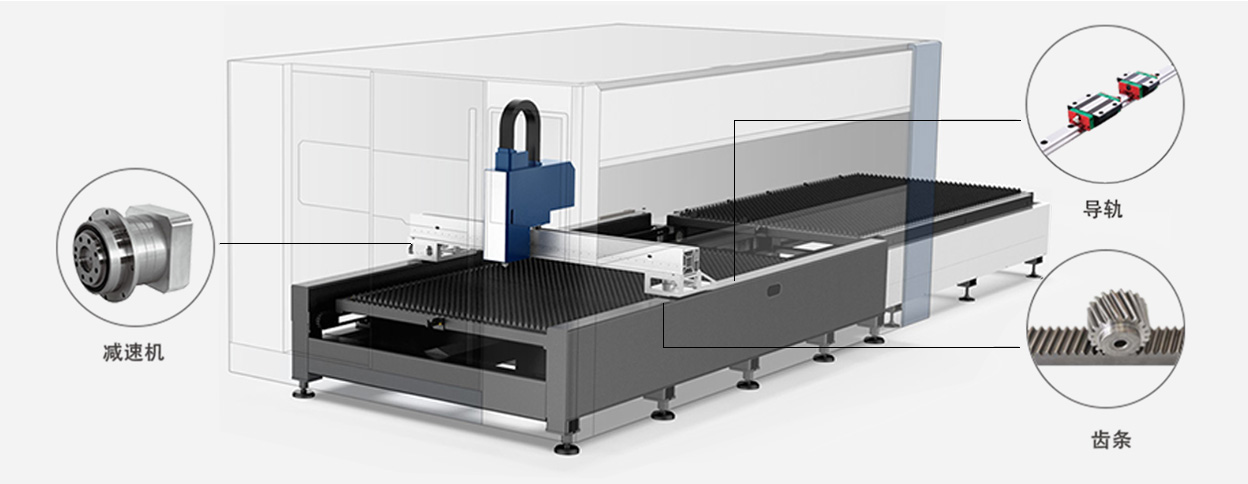 ■采用知名品牌臺灣YCC的斜齒齒條,臺灣上銀(HIWIN) 的30導軌,德國西門子的電子器件,使用日本松下或安川的驅動電機,保證了機器的工作精度。